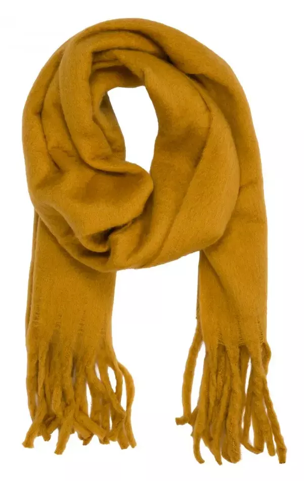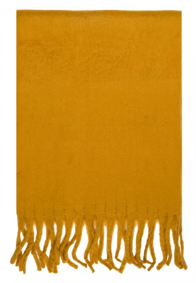 Szalik szal damski młodzieżowy długi ciepły zimowy z frędzlami dred musztardowy 3003