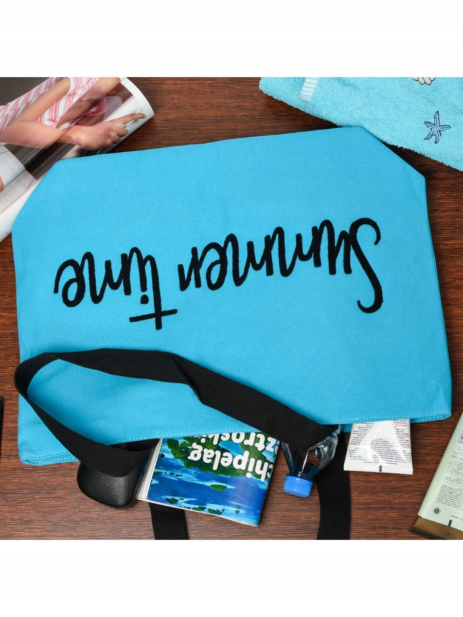 Torba plażowa damska shopper na lato plażę duża pojemna wygodna kobieca modna błękitna 2392